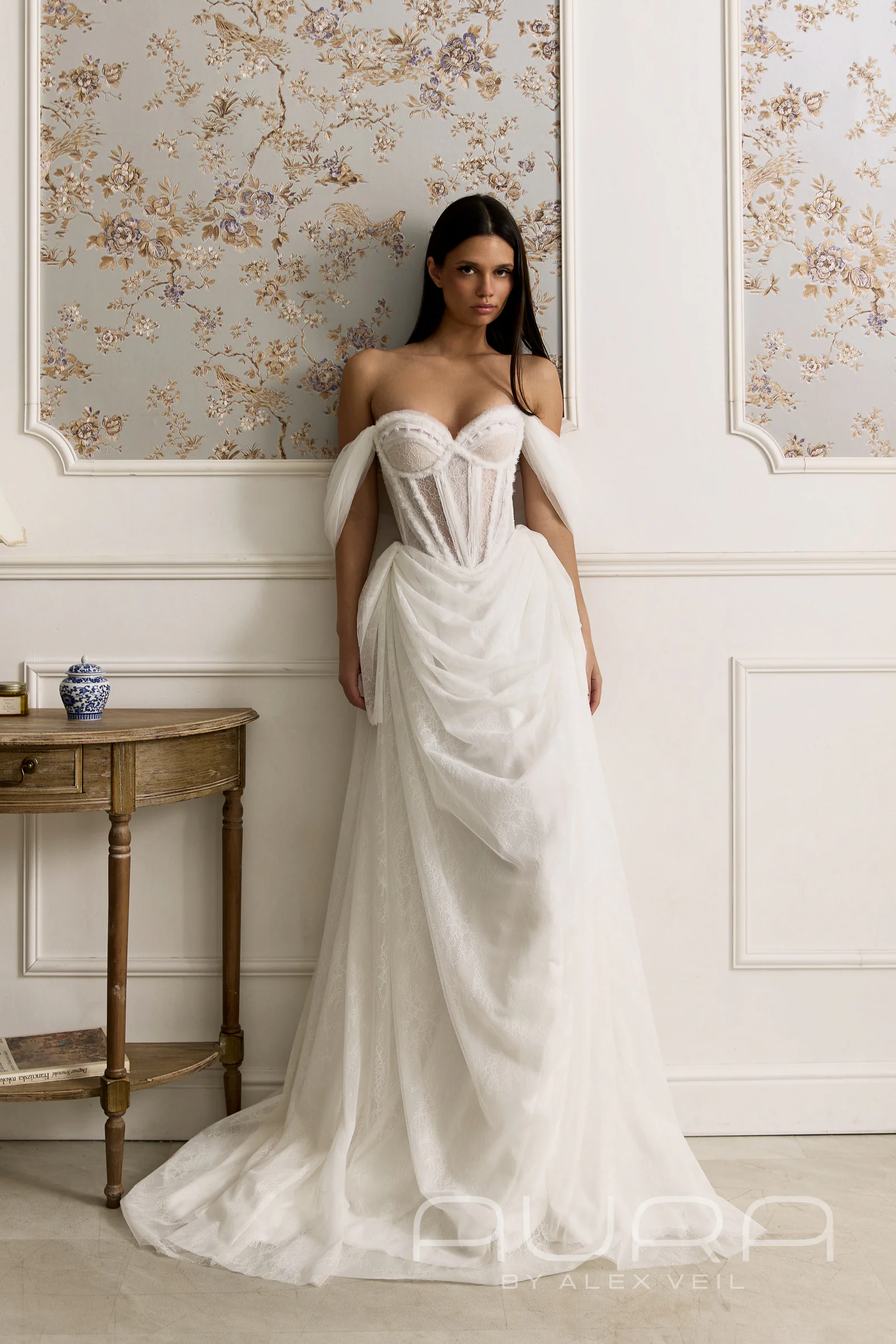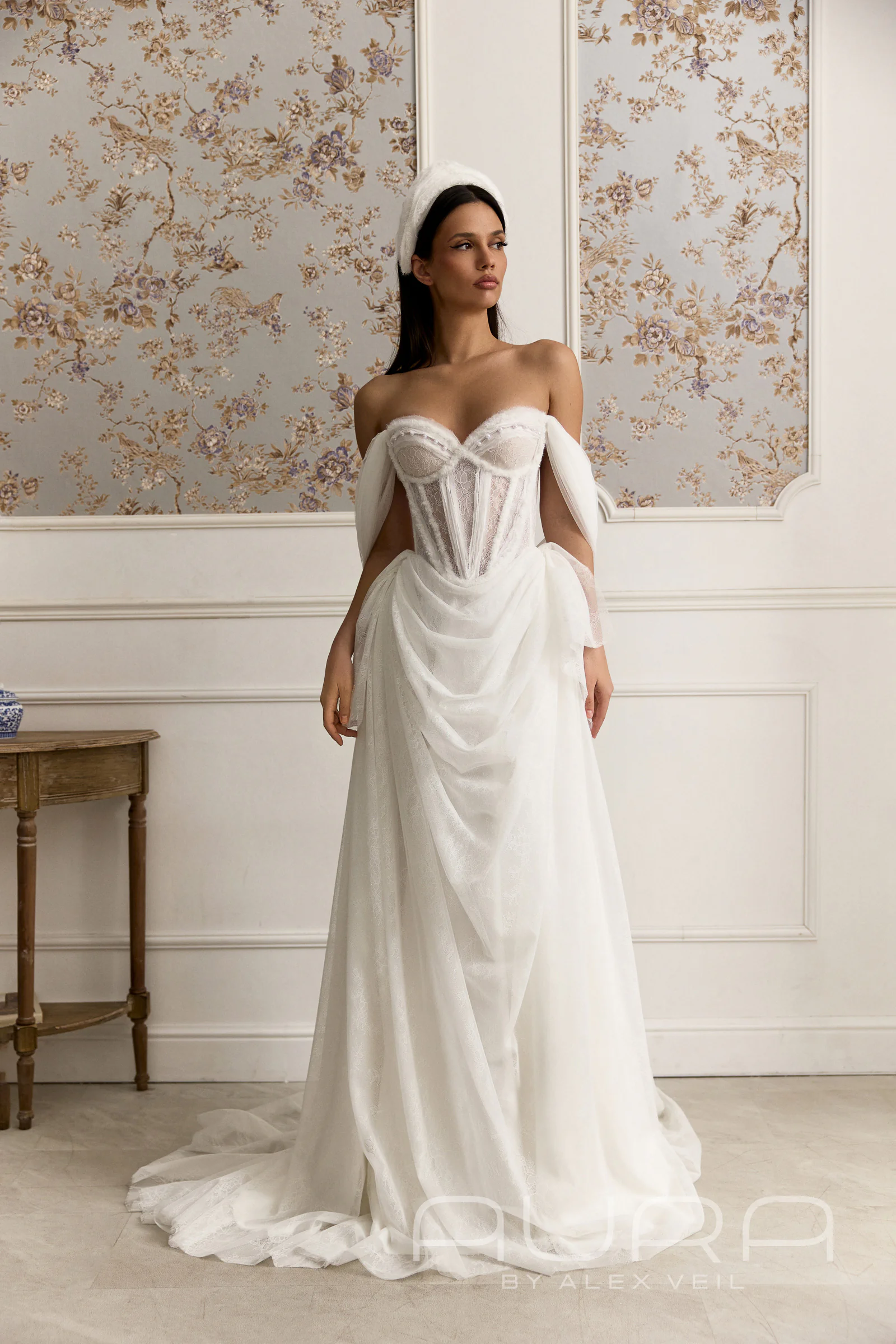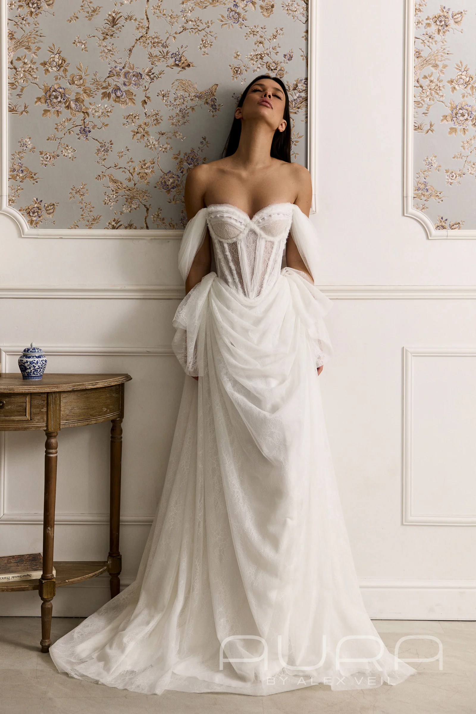 Свадебное платье ‘Mika’ — это дизайнерский эксперимент с формой и фактурами материалов. Здесь классическая романтика встречается с дерзким корсетным стилем и сложным кроем, создавая яркий незабываемый силуэт.
