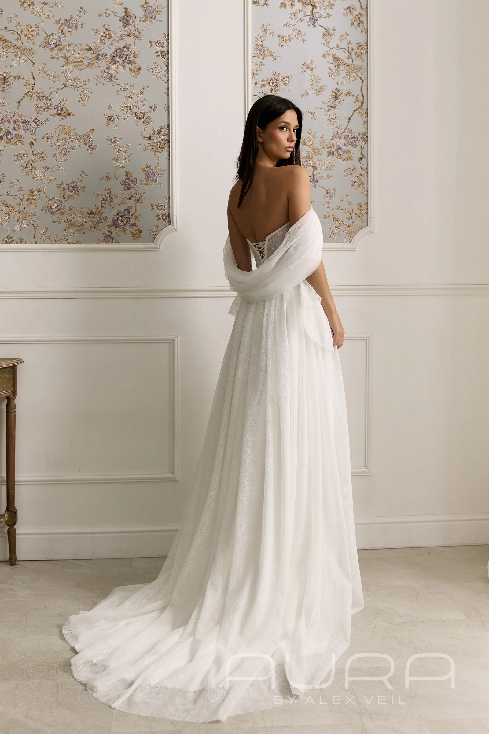 Платье ‘Mika’ может стать идеальным выбором для концептуальной свадьбы, где невеста хочет продемонстрировать вкус к сложным, нестандартным решениям и современному дизайну.