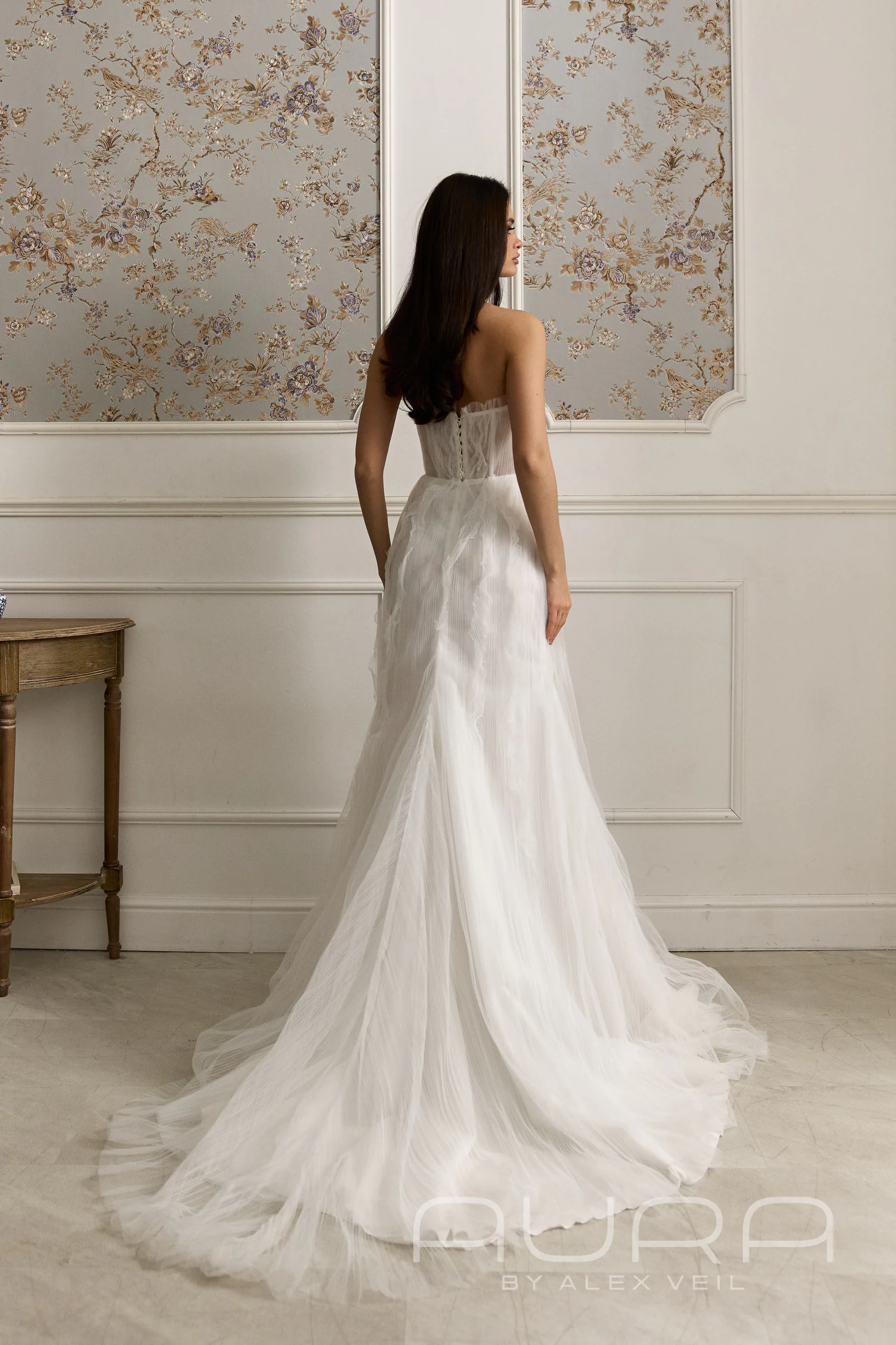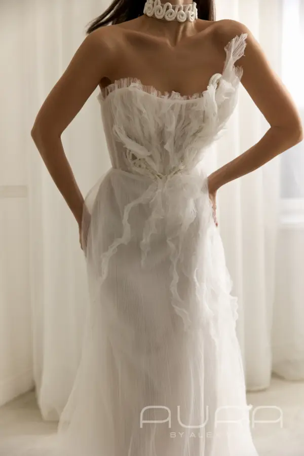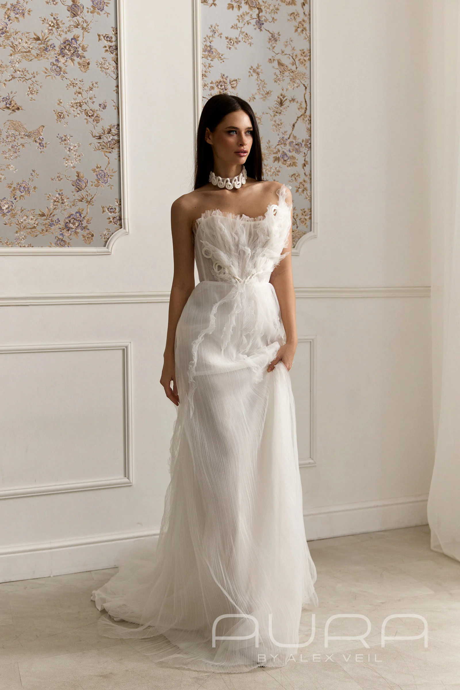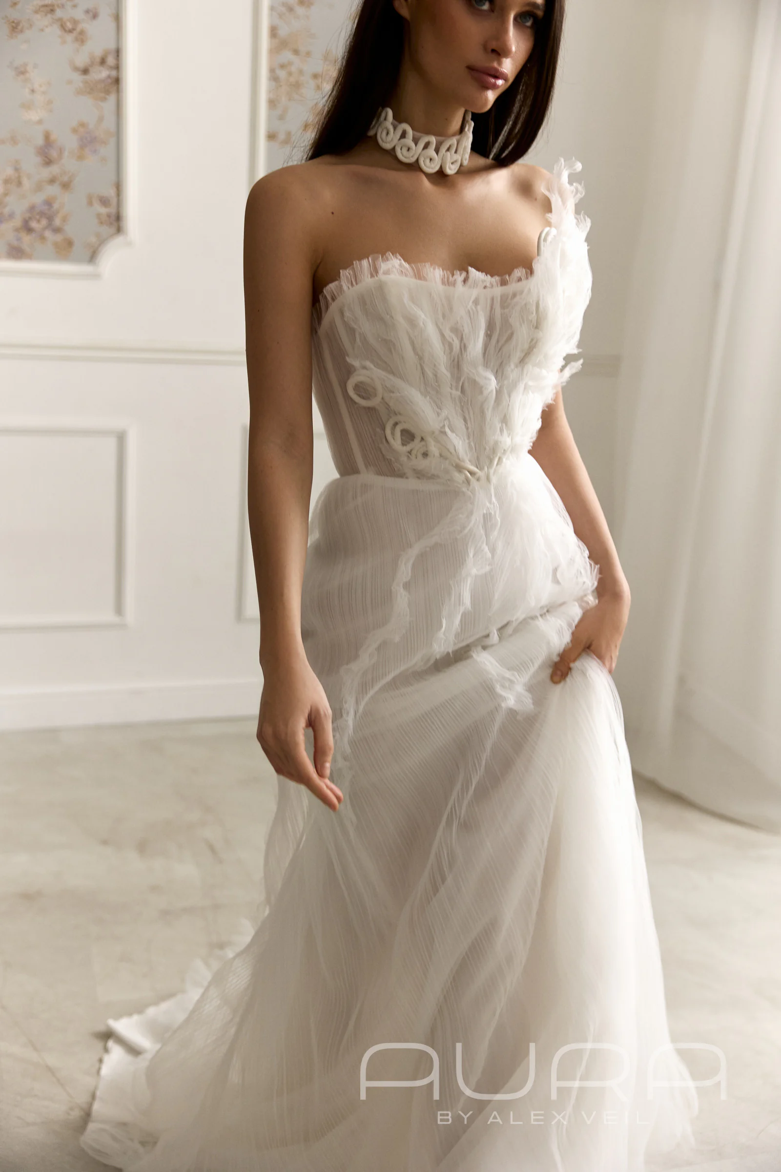 Платье ‘Priscilla’ станет идеальным вариантом для концептуальной свадьбы, а также для творческой фотосессии, где важна каждая деталь.