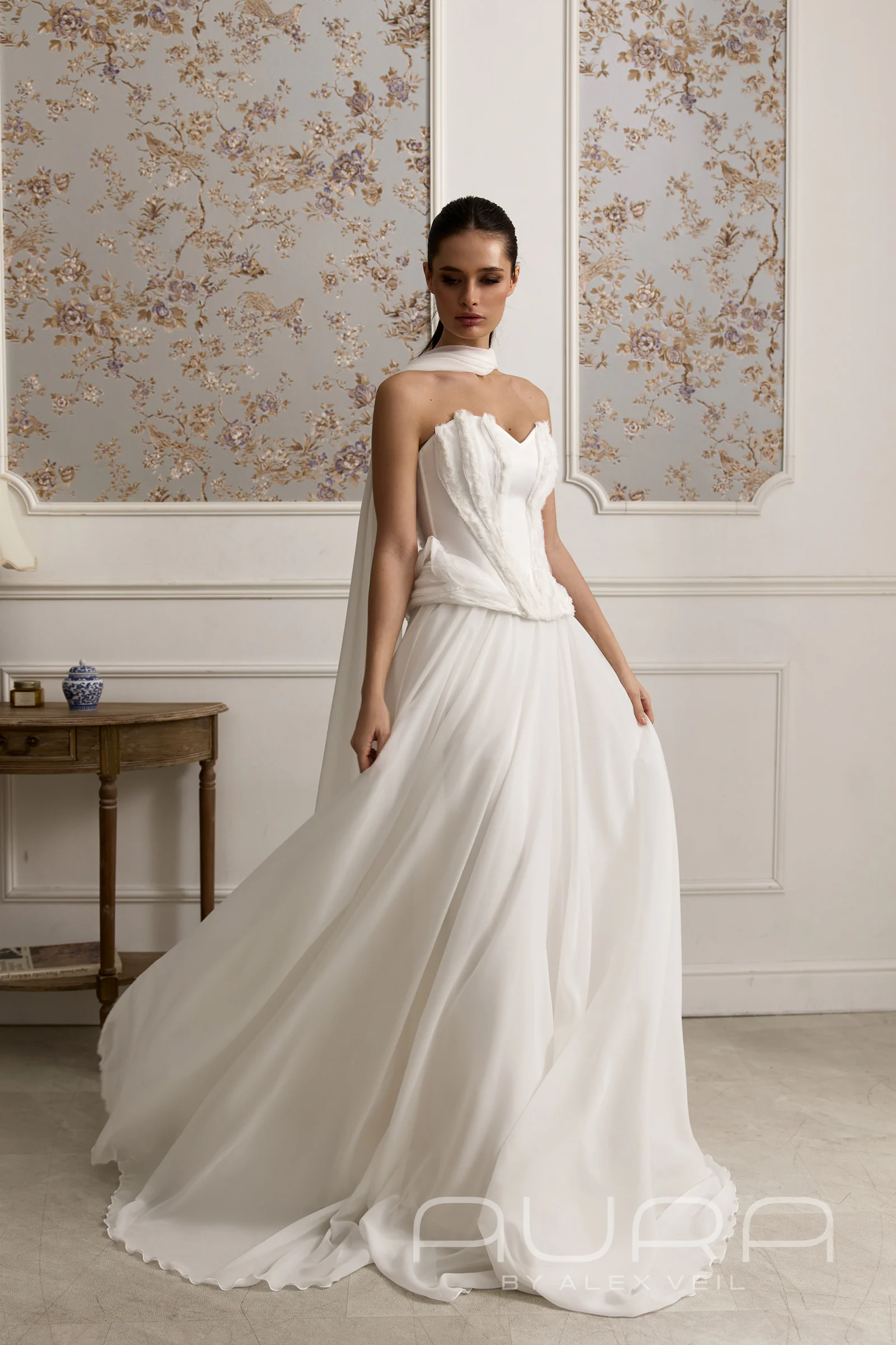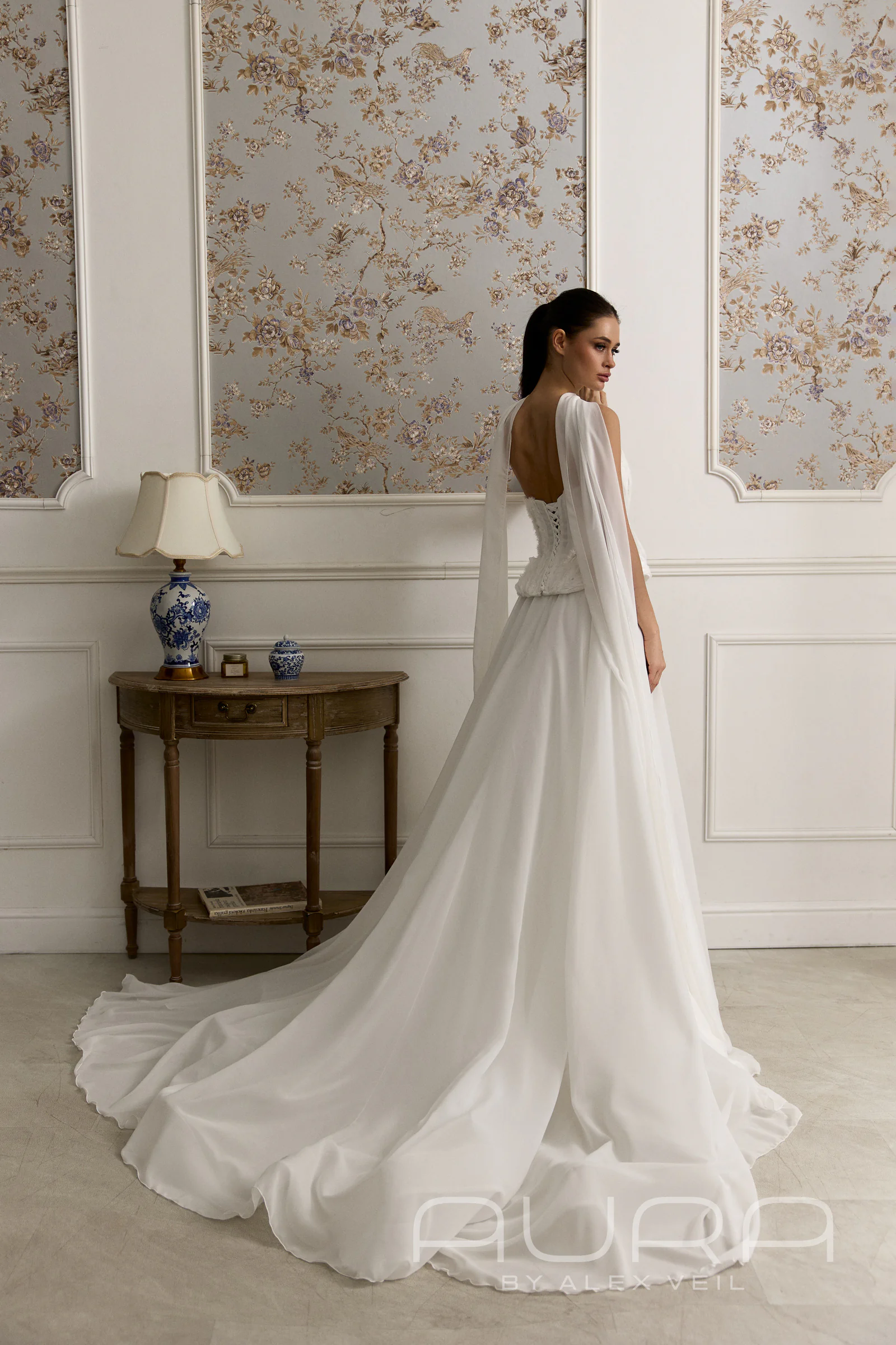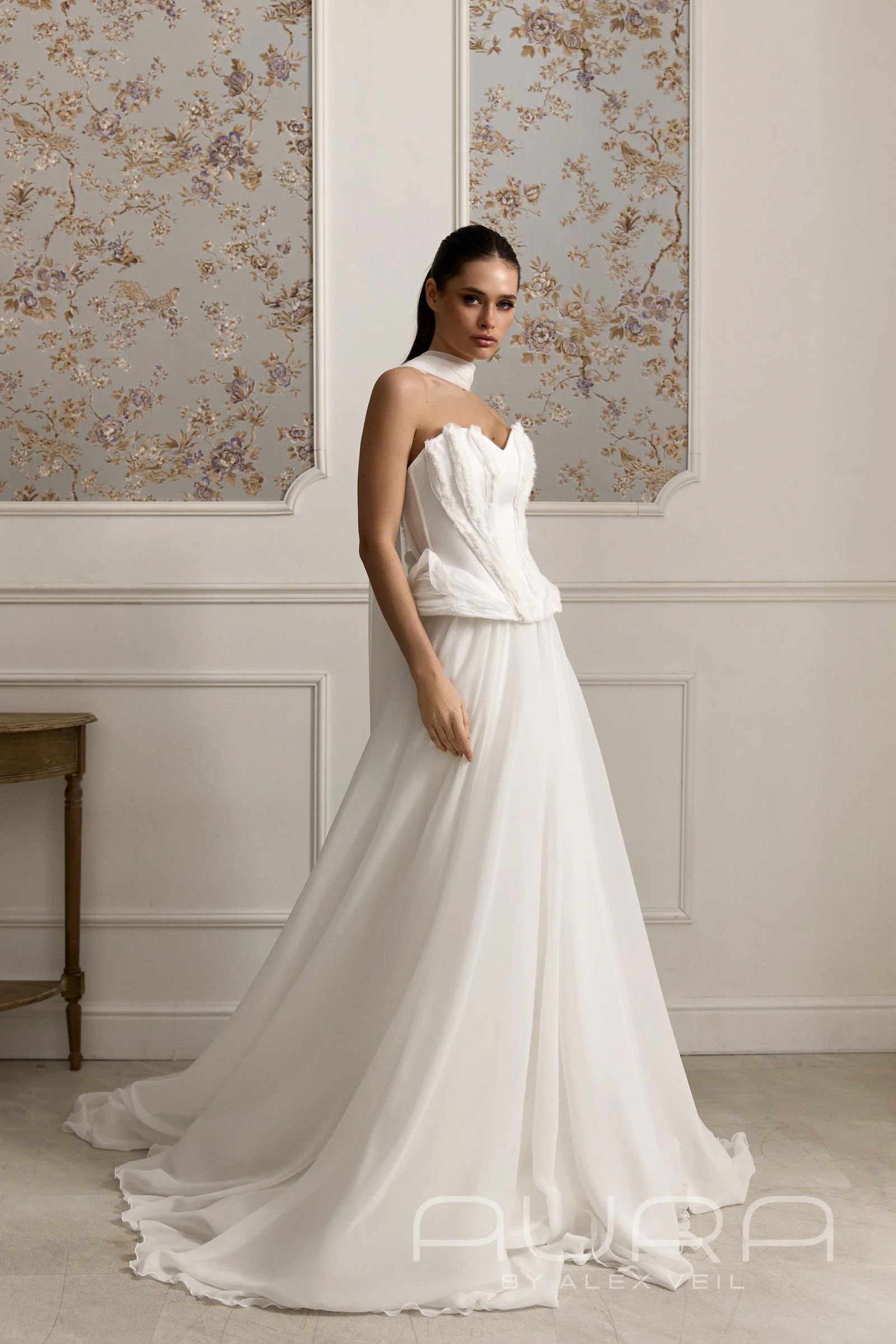 Renata подойдет невестам, которые ищут сдержанный образ с оригинальными деталями.