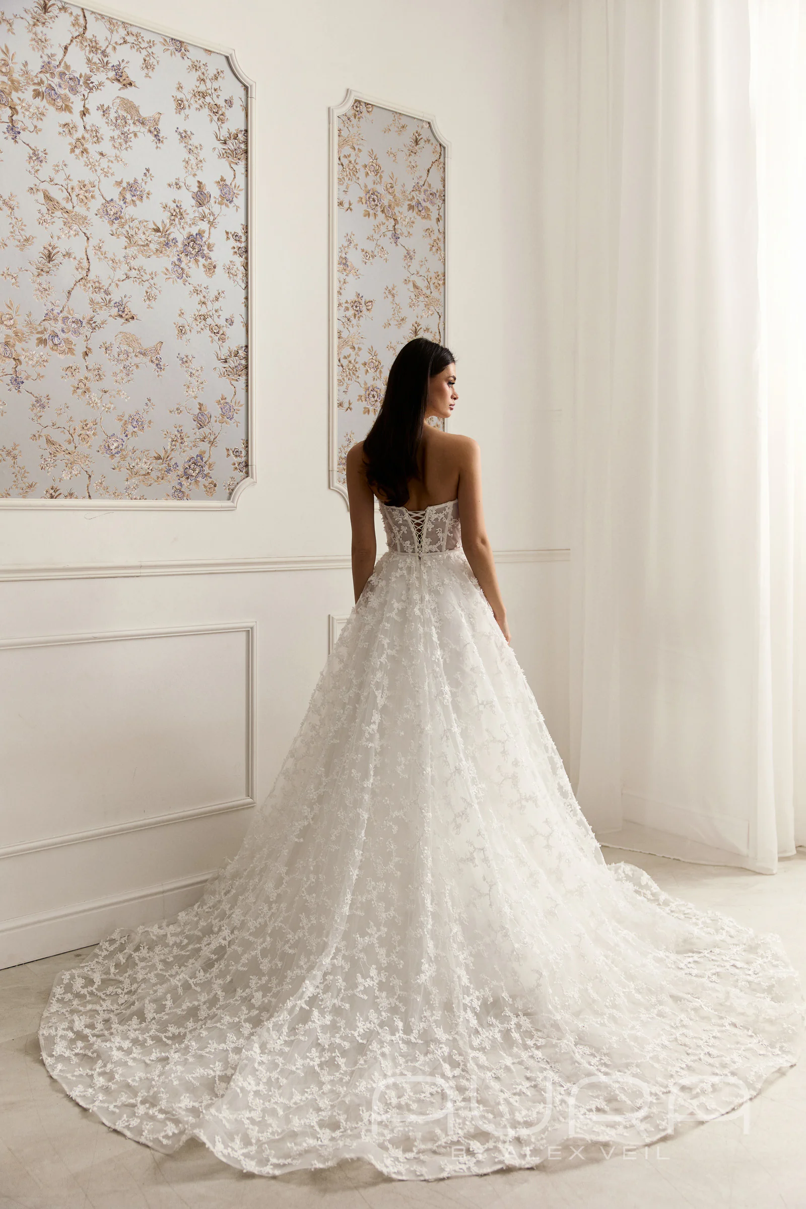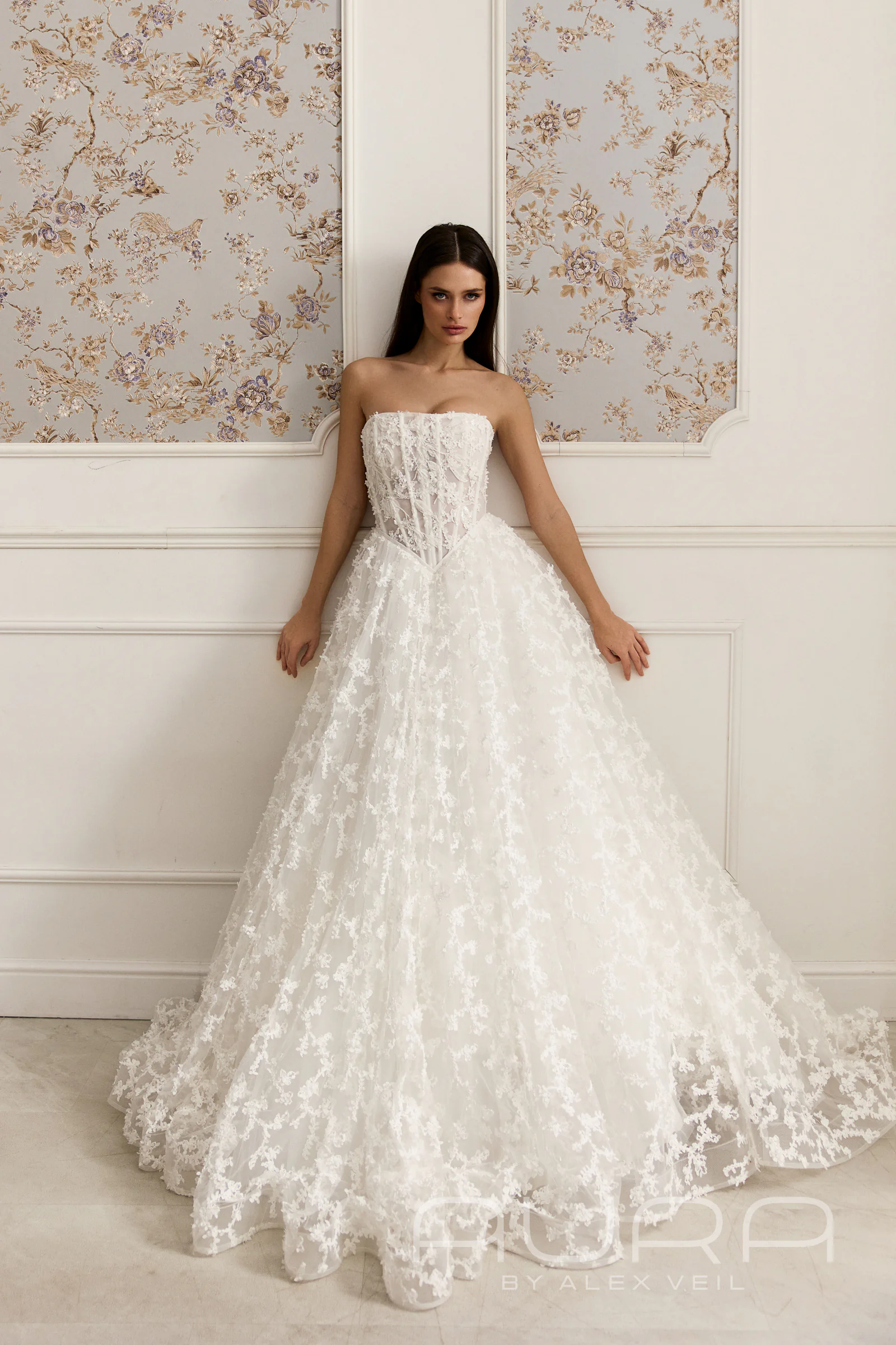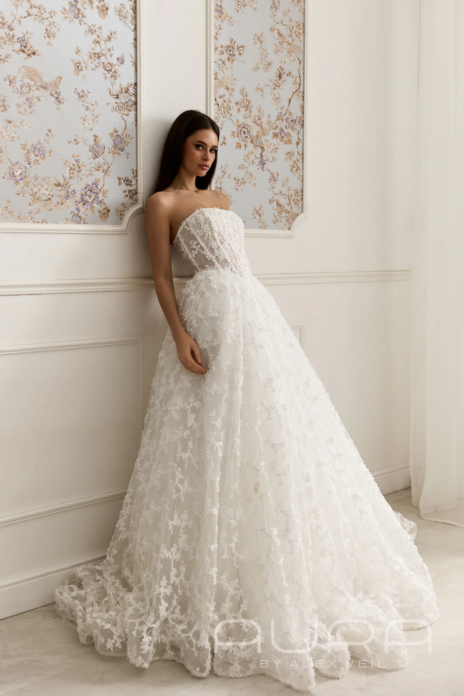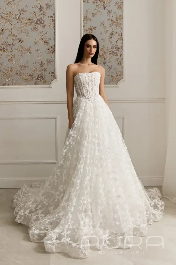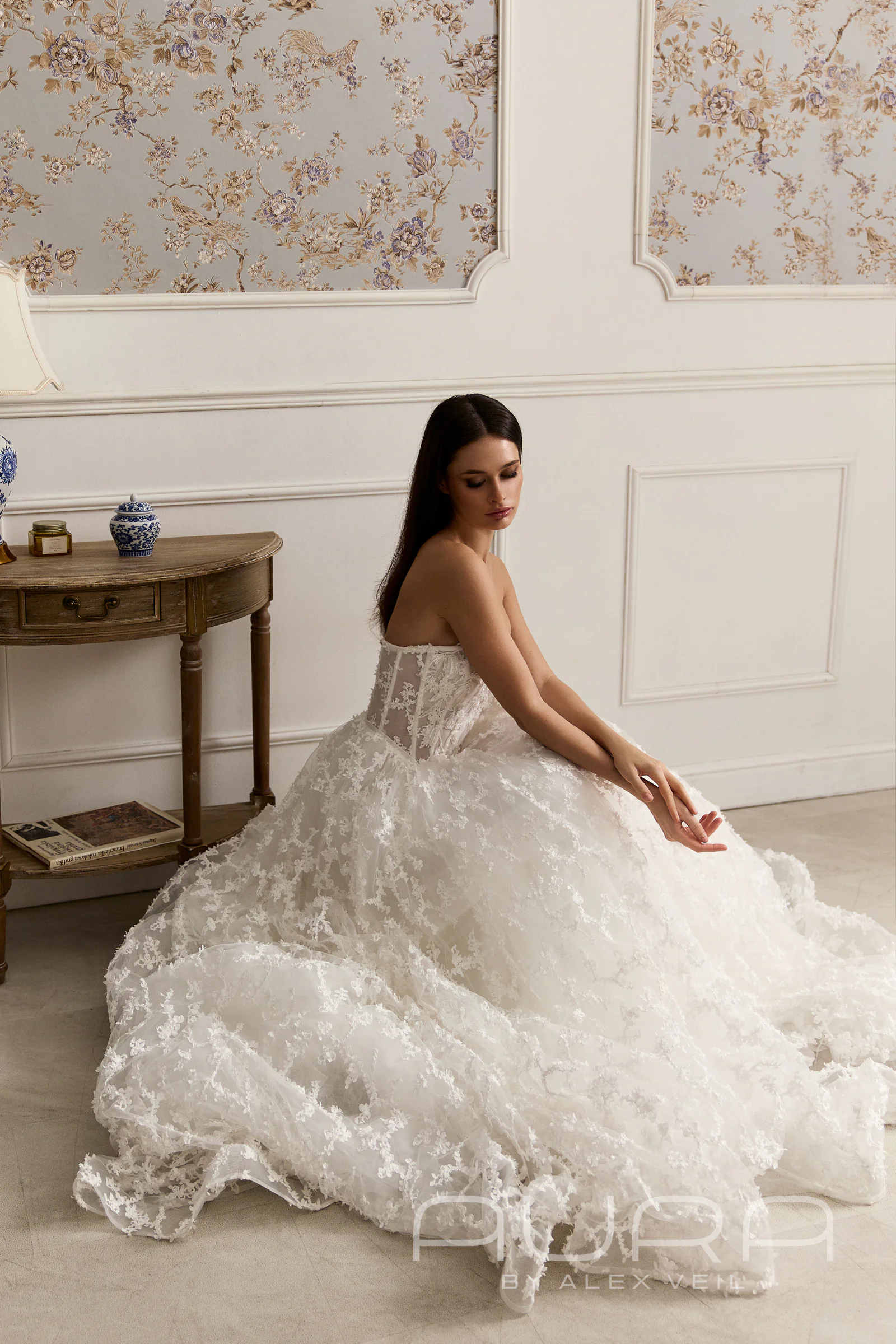 Платье ‘Sage’ воплощает романтический максимализм. В этой модели дизайнеры объединили величественный пышный силуэт с трендовой «живой» фактурой, создав нежный и воздушный образ.