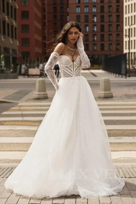 Лёгкое и игривое короткое свадебное платье с корсетом на бретельках.